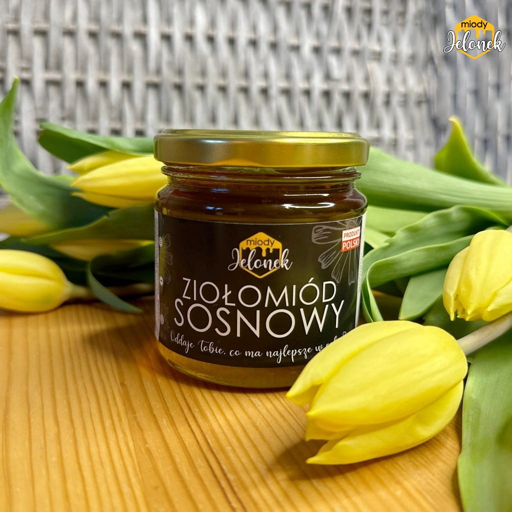 Ziołomiód sosnowy to specyficzny rodzaj miodu, który jest wynikiem połączenia tradycyjnego miodu pszczelego z ekstraktami z młodych pędów sosny lub innymi dodatkami pochodzącymi z sosny. Jest to produkt naturalny, który łączy w sobie właściwości miodu oraz sosny, znanej z korzystnego wpływu na układ oddechowy i ogólną odporność organizmu.